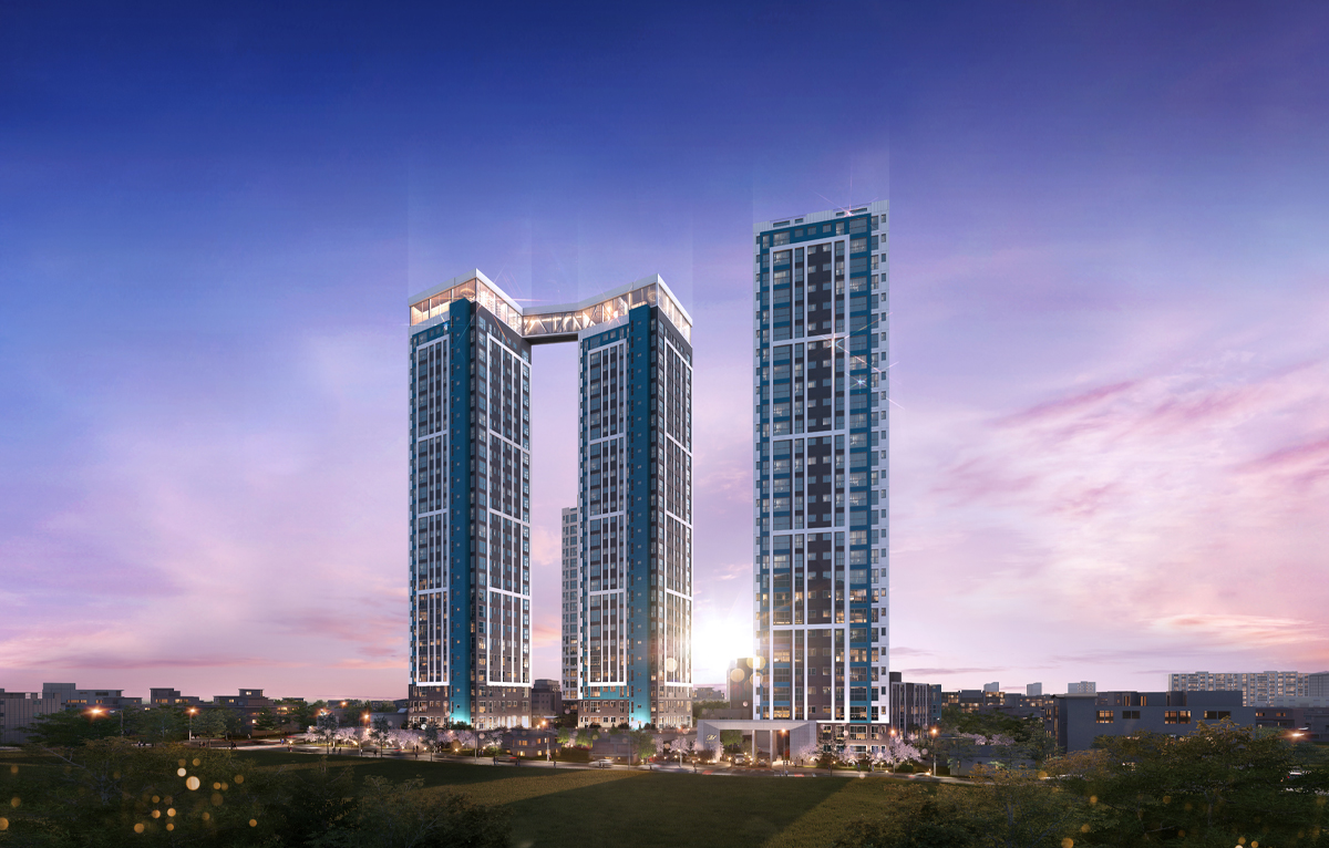 - 상기투시도는 소비자의 이해를 돕기 위해 제작된 CG컷으로 측면 그래픽, 문양 및 외부색채, 단지조경, 세부식재, 외관 디테일 등은 실제 시공 시 세부계획이 변경될 수 있습니다.